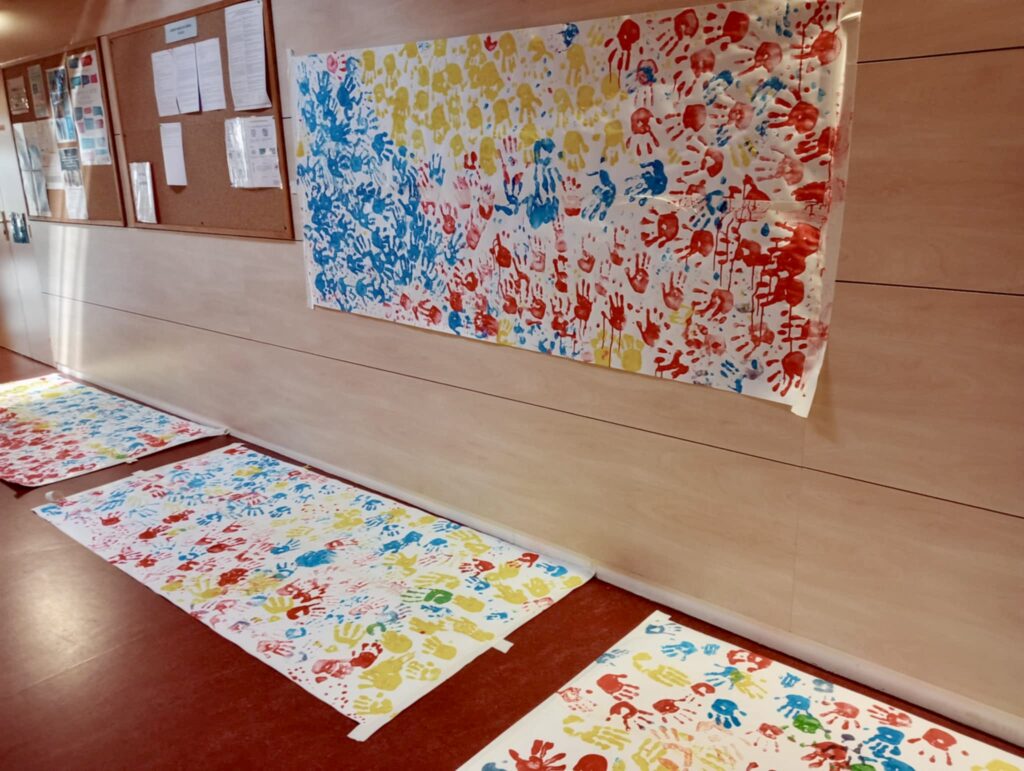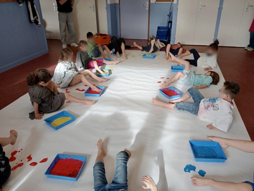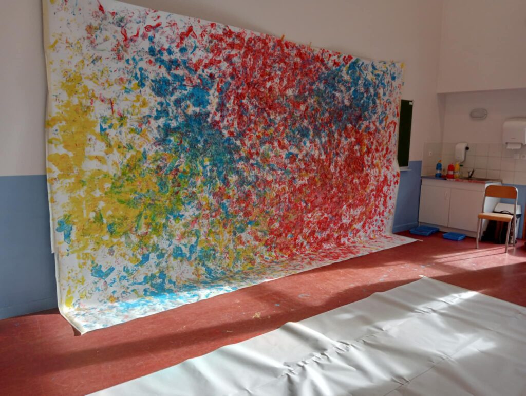 Avec Anaïs, on sort de 2 jours d’ateliers musique, danse et peinture dans deux écoles maternelles de Monistrol, Lucie Aubrac et Albert Jacquart